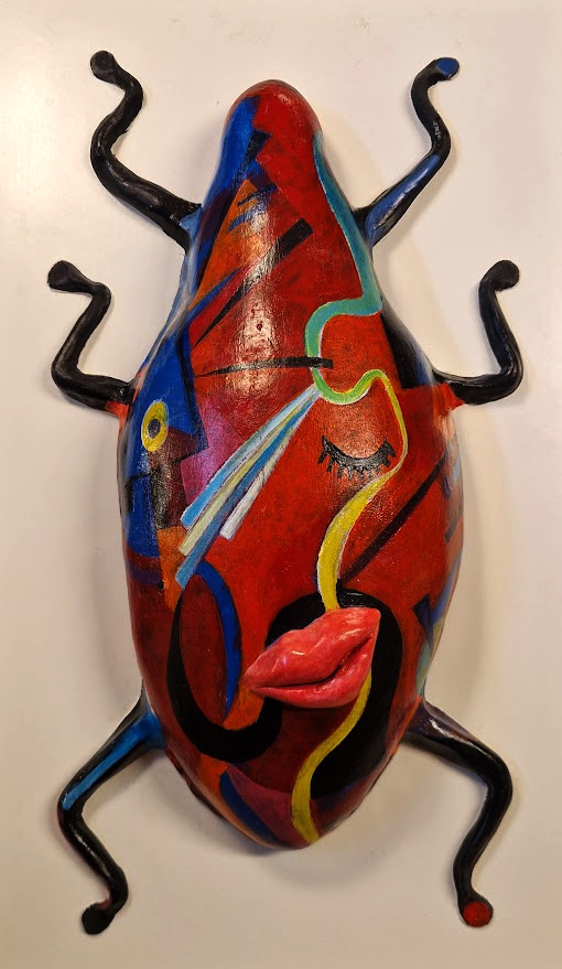 If we define contrast as the opposition or juxtaposition of different forms, lines, or colors in a work of art to intensify each element's properties and produce a more dynamic expressiveness. Then this definition undoubtedly would apply to the work of Mexican born, Swedish resident Federico Winqvist Estrada. However, this definition can be applied in a more extensive sense, including structures as smooth surface in opposition to rough or textures like matte finish opposed to glossy parties. Even in relation to the theme; flesh in contrast with spirituality. Or even more as shown in Federico`s latest works, the frequently despised insects, and beetles in combination with the crown of creation; the human form. “I´m a great lover of vivid color and of well-defined lines, I enjoy creating contrasts and then struggle to make them harmonize, for example hard straight forms against soft rhythmical curves or dark shades against bright hues, often complementary colors. My painting reflects largely my somewhat extreme nature. I am a very intense and passionate person just like the red-orange color scheme in my canvas, while at the same time I can suffer from melancholy and an awareness of life's briefness as shown in the turquoise blue color scheme.” Beyond any doubt Federico`s colorful pallet is an inheritance from his homeland, Mexico, the country of thousands of contrasts.