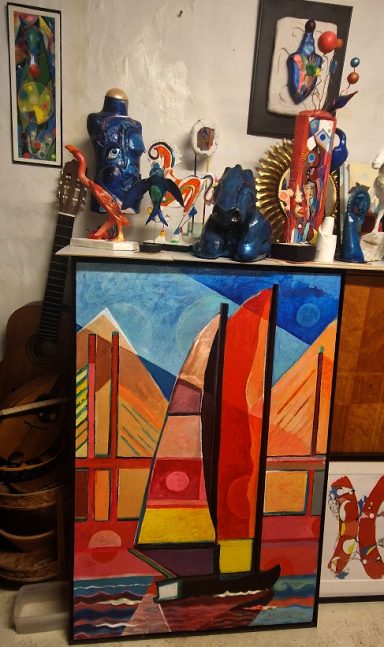 Att du begåvats med ett sällsynt fint färgsinne måste väl många upptäcka. Ditt hemlands starka färgrytmer bär du väl med dej, men jag tror att färgskalan är din helt personliga, förstås. Att du känner dej befryndad med Henri Matisse - den störste av färgrenare - är lätt att förstå. Du tycks också vara övertygad om att välstämda, klara färgtoner kan rena - befria. Självklart bollar du med omöjligaste färger och får dom att spela mot varann och det blir aldrig rörigt. För det finns jämvikt.
